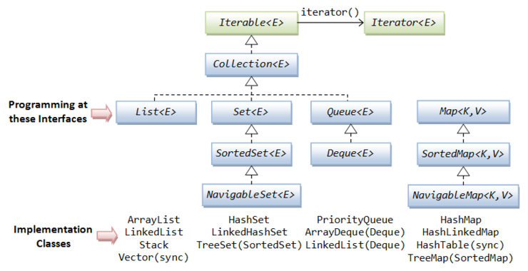 - 데이터 군을 저장하는 클래스들을 표준화한 설계