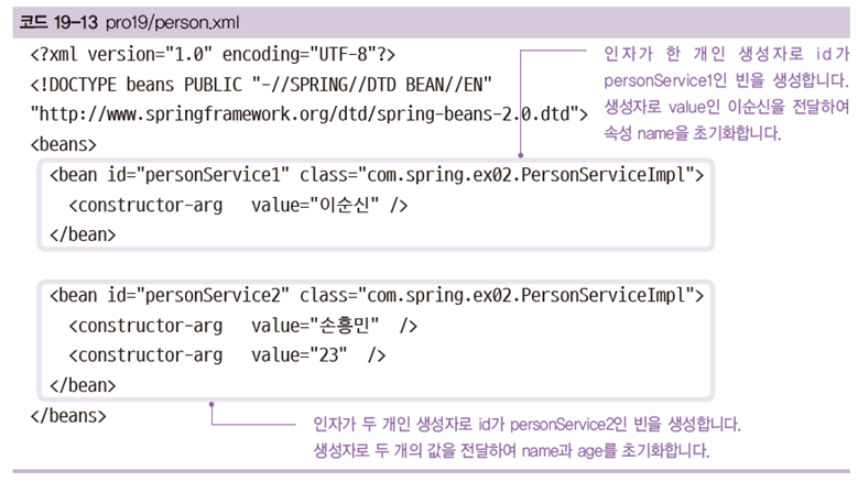 | constructor-arg | 생성자를 이용해 값을 주입할 때 사용합니다. |
