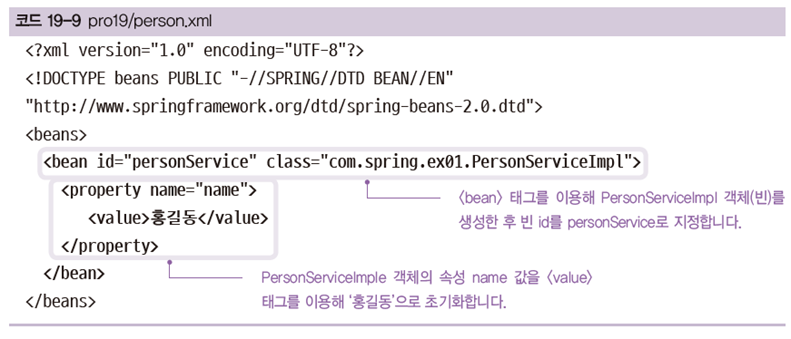 | id | 빈 객체의 고유 이름으로, 빈 id를 이용해 빈에 접근합니다. |