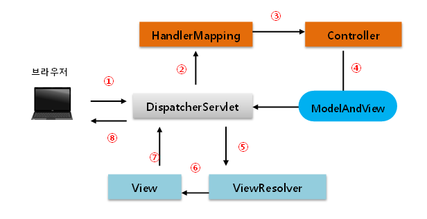 | ModelAndView | 컨트롤러가 처리한 결과 및 뷰 선택에 필요한 정보를 저장. |