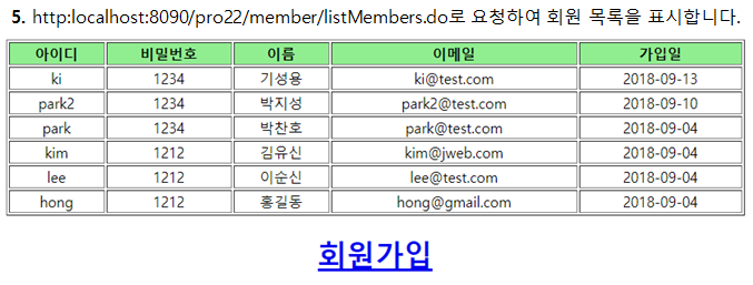 JdbcTemplate 클래스를 이용해 회원 정보 조회