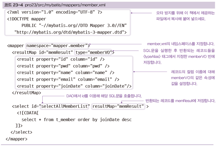 - SQL문과 프로그래밍 코드를 분리해서 구현한다.