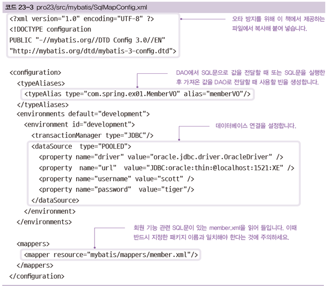 2) mybatis.dtd를 이용하여 modelConfig.xml의 configuration 안에서 <environments> 태그에서 <dataSource> 태그를 정의할 수 있다