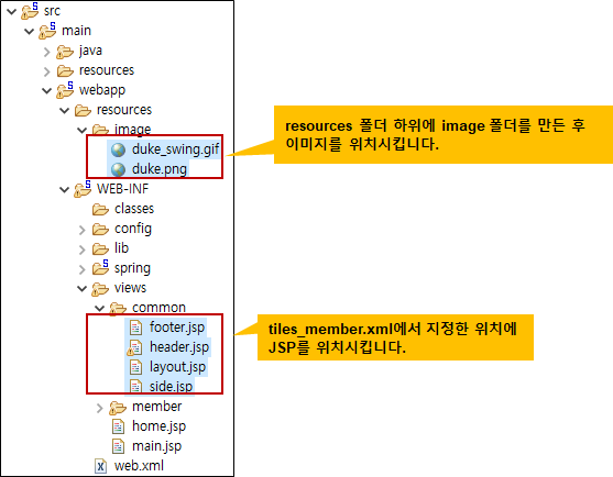 ** 반드시 tiles_member.xml에서 지정한 경로에 레이아웃 관련 JSP들이 위치해야 합니다.