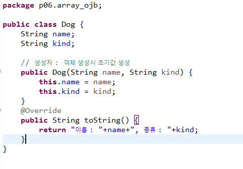 객체 생성자(constructor) : 객체 생성 시 초기화 값을 생성한다.